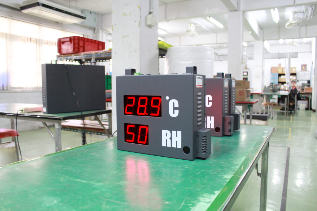TEMPERATURE & HUMIDITY DISPLAY BOARD MODEL-2169B ตัวเลขที่แสดงเป็น 7-Segment 2.3 Inch ตัวเลขในการแสดงผลสีแดง Display จะโชว์อุณหภูมิ และความชื้น เป็นระบบ LAN TO RS485 โปรแกรมสามารถดึงข้อมูลอุณหภูมิและความชื้นจากตัวบอร์ดที่แสดงค่ามาโชว์ที่ Software สามารถเก็บบันทึกข้อมูลได้ และสามารถเรียกดูข้อมูลย้อนหลังได้ และตั้งค่า Setting ต่างๆ ได้จาก Software วัสดุเป็นกล่อง Metal