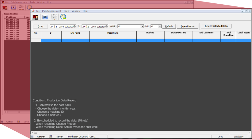 on Software Client โดยข้อมูลที่แสดงจะเป็นข้อมูลการผลิต หรือข้อมูลการหยุดทำงานของเครื่องจักร