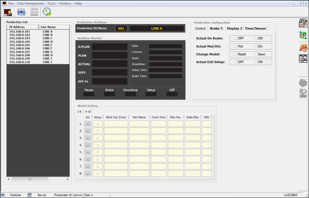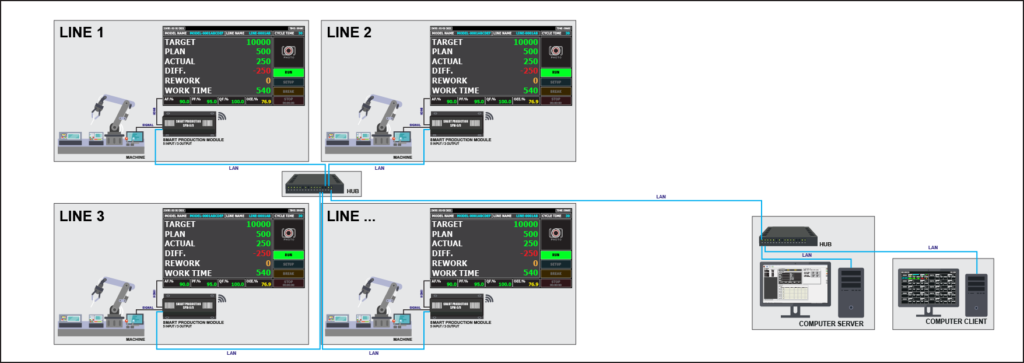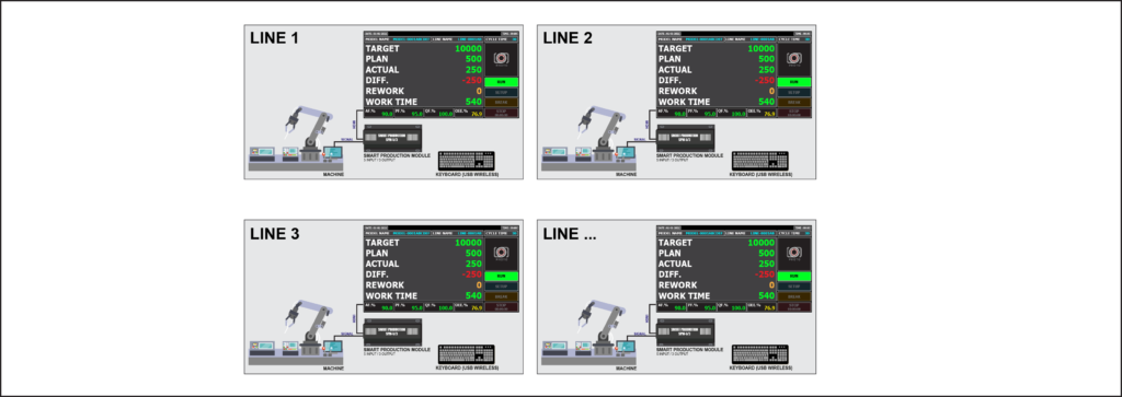 ช่วยให้รู้ภาพรวมการผลิตแบบ Real-Time ไม่ต้องเสียเวลาเดินดูในแต่ละไลน์สามารถจัด Group ได้ ดูผ่าน Software Client บน PC ได้ทันที